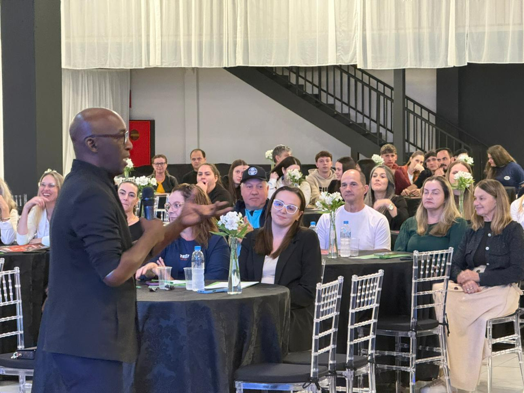 Ainda durante a palestra, o professor enfatizou que a postura individual impacta diretamente nos resultados. “Muitas pessoas dizem que não crescem na empresa, mas, muitas vezes, a empresa está evoluindo. Se você não acredita na sua capacidade e não demonstra isso, dificilmente haverá crescimento. Como você se posiciona no mercado? Se você se vê como um produto, é hora de mostrar sua qualidade”, pontuou.