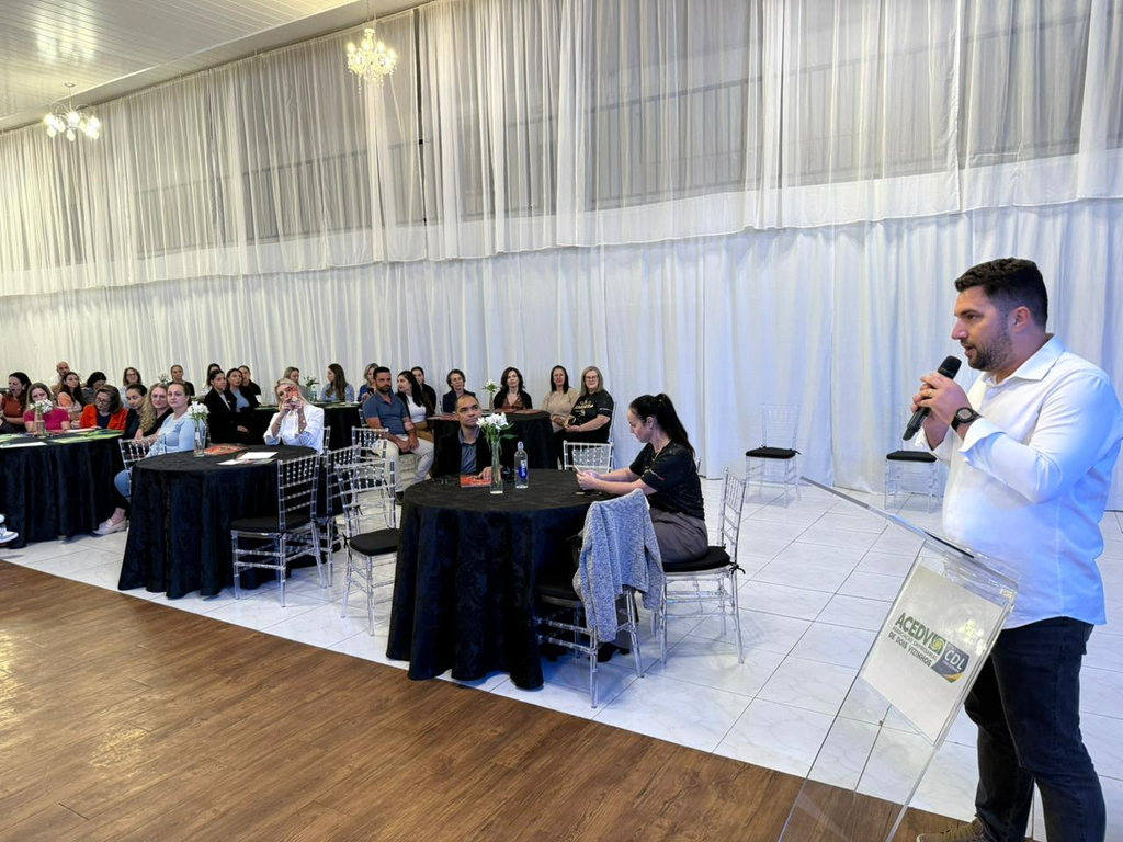 Em sua fala, Saulo relembrou a trajetória da entidade, agradeceu à equipe, diretores e patrocinadores, além de destacar a estrutura da ACEDV/CDL. “Este é um momento importante. Hoje recebemos o professor João Carlos, amanhã teremos o Giovani Lima, que é prata da casa, falando sobre funil de vendas, e seguimos com a programação até a Festa da Camiseta, que acontece na quinta-feira”, disse.